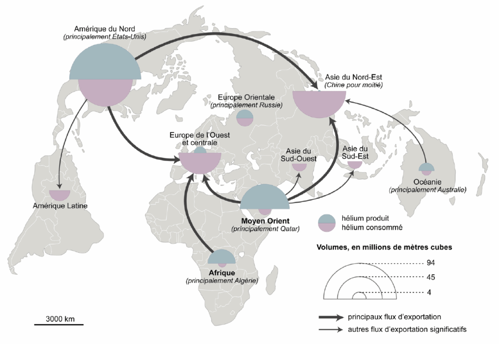 La carte ci-dessous illustre clairement la production, les échanges et la consommation d’hélium dans le monde en 2018.